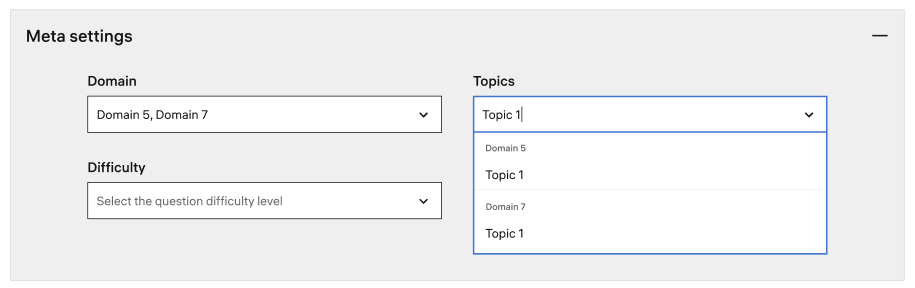 Now authors can add domains and topics to questions. This helps them categorize content by topic and facilitates future searches. Authors can later easily search for relevant questions by domains and topics.