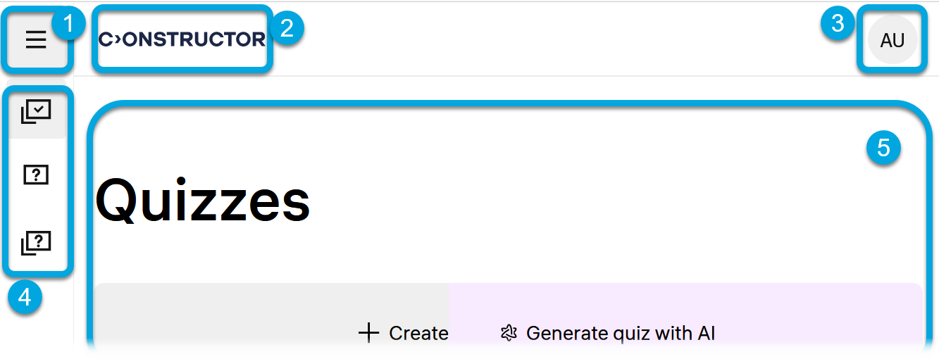 According to the numbers in the screenshot, the Constructor Assess UI has these main parts:
