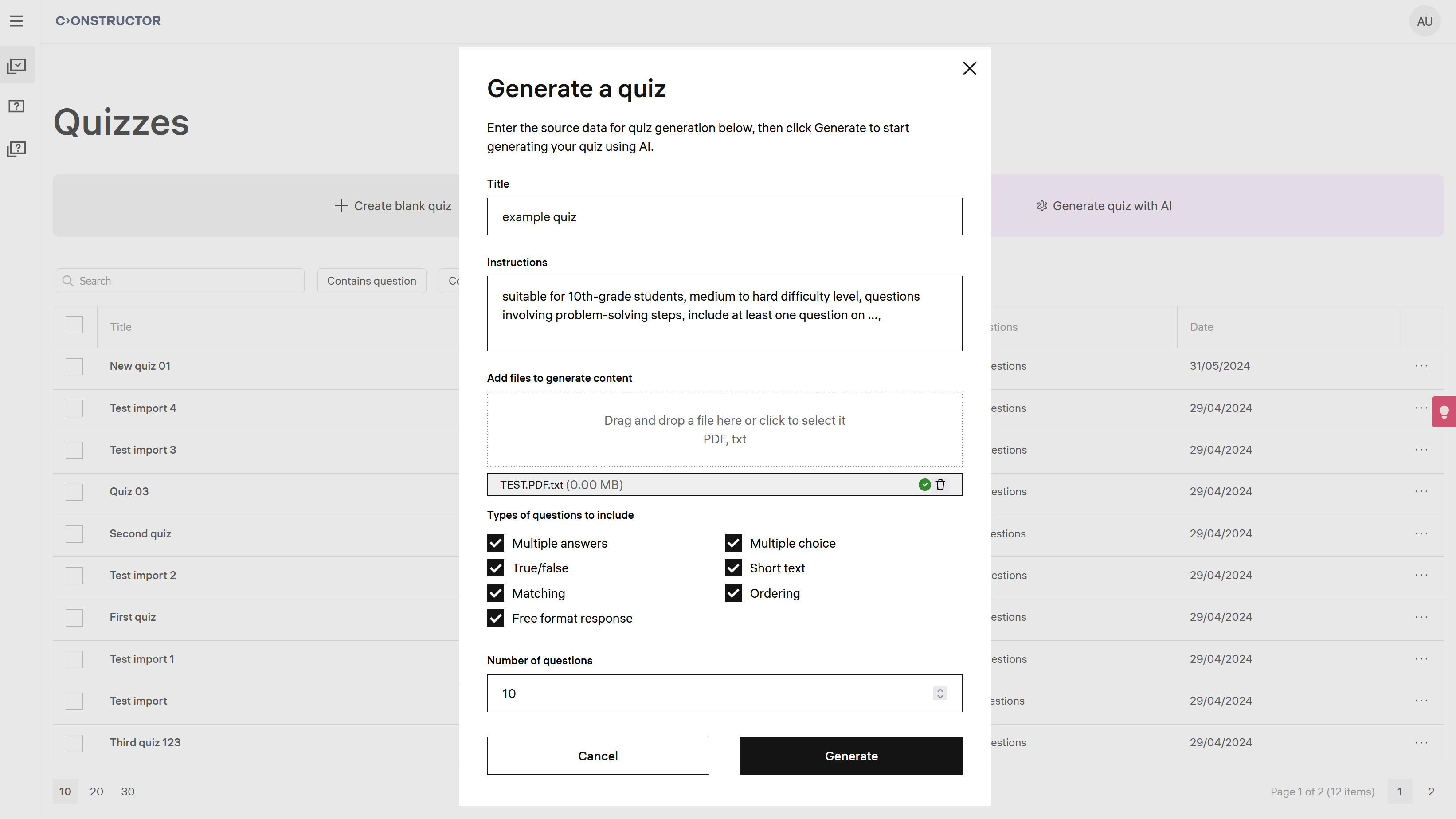 Before you start generating a quiz with Artificial Intelligence, prepare the materials on which you want to base the quiz: for example, your lectures or other learning materinals.