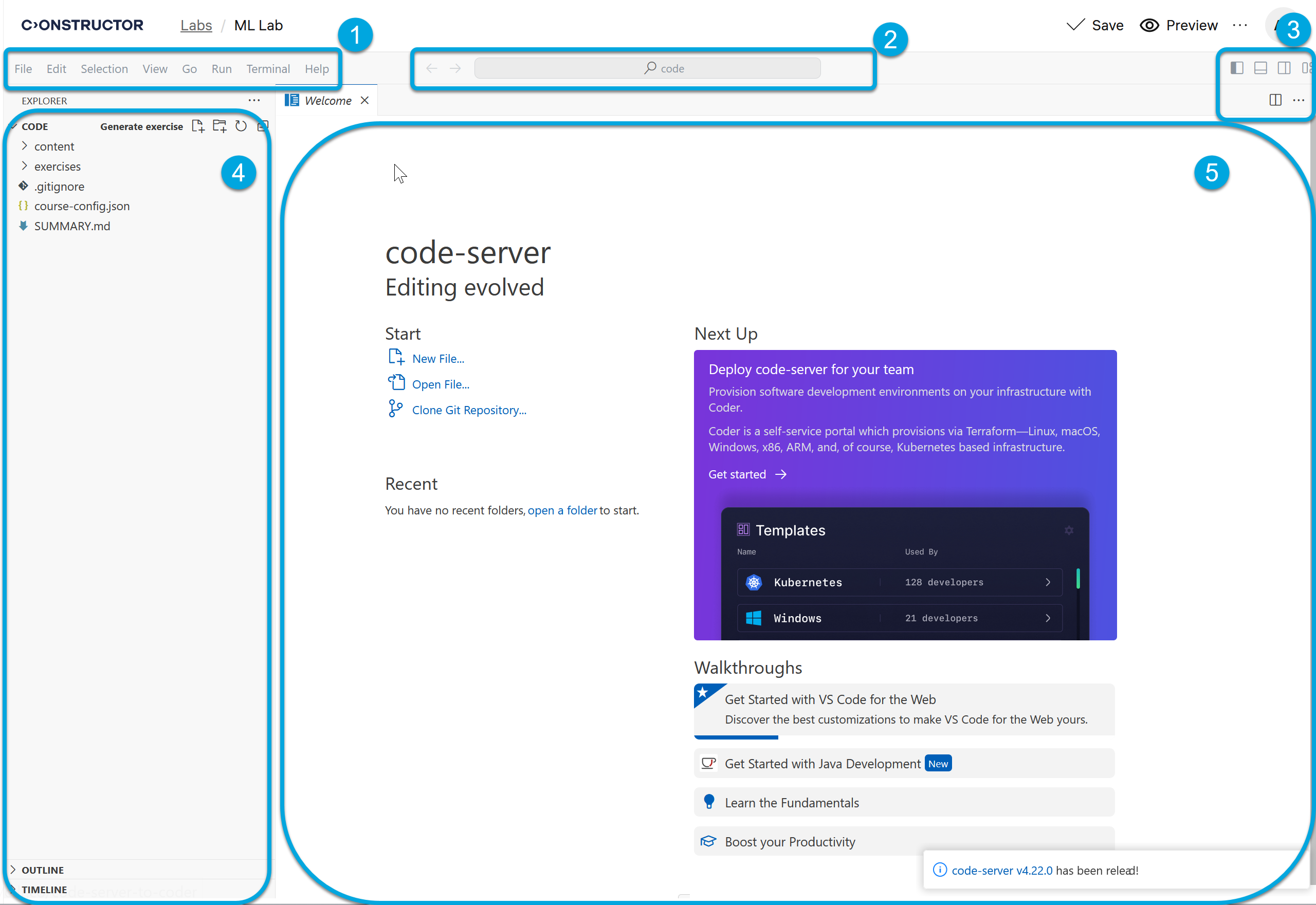 The general view of the Coding Lab UI is shown in the screenshot below.