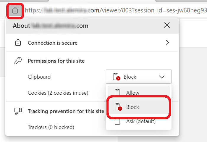 For Microsoft Edge, click the list next to Clipboard and click Block.