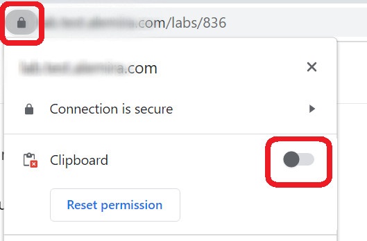 Enable the clipboard. For Google Chrome, switch on the toggle next to Clipboard (or click Reset permission). For Microsoft Edge, click the list next to Clipboard and click Allow.