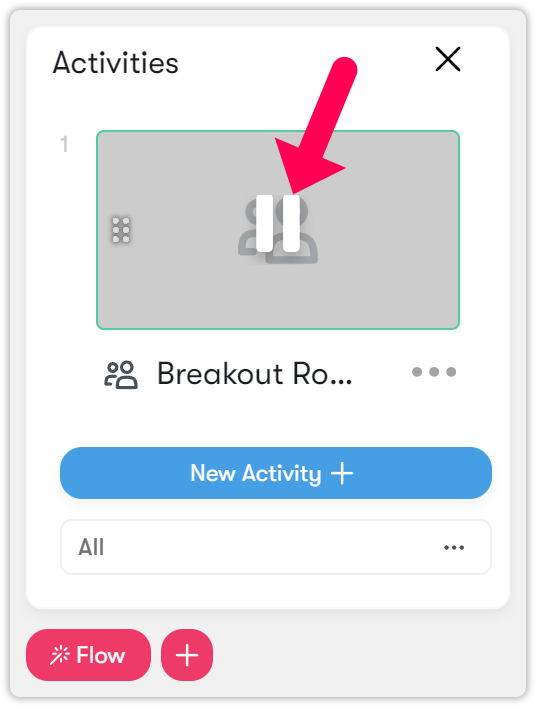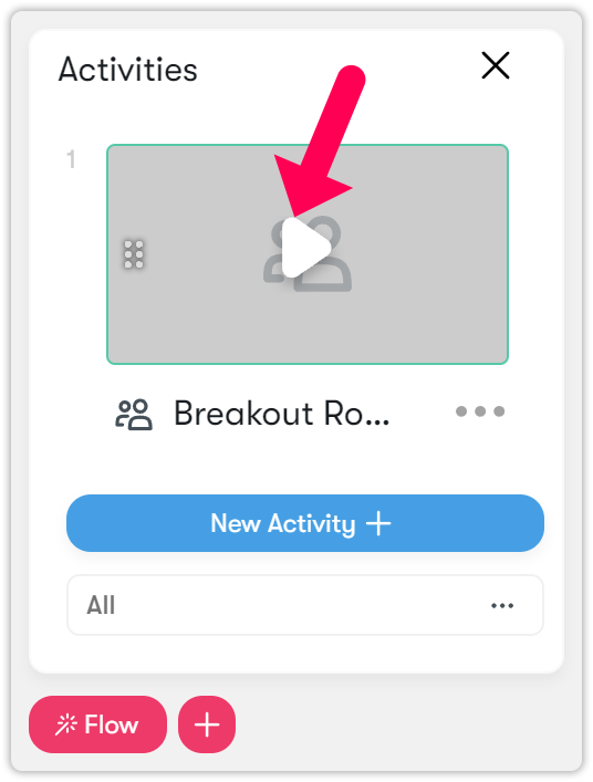 Then, the Breakout Rooms activity in the Flow becomes active when you press the play button, and students are automatically distributed to groups according to your settings.