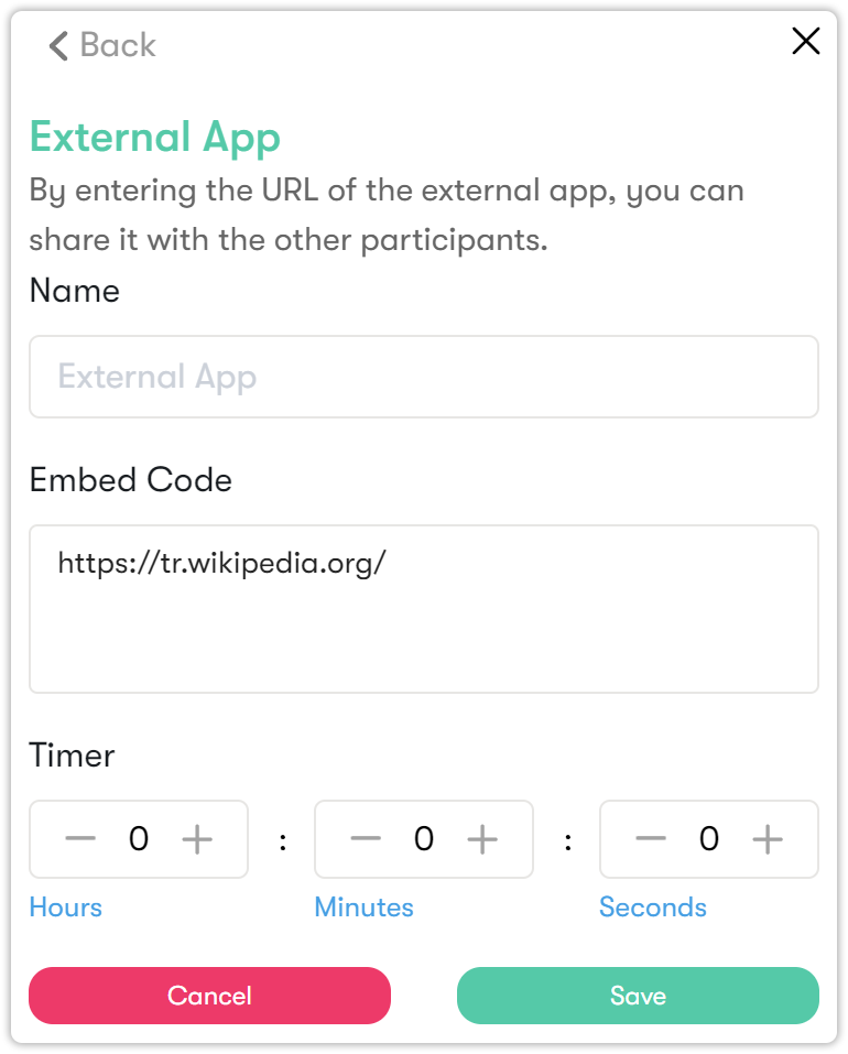 If you want to use tools such as Google Docs or Padlet and share them with your students, you can do so using the External Application feature in Others.