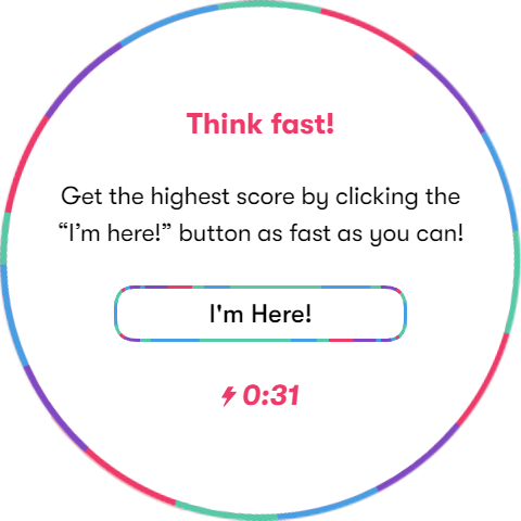 Ensure the I'm Here feature is enabled. This feature prompts students at intervals to confirm their presence and attention. When the prompt appears on students’ screens, they must click the I'm Here button to respond. The quicker a student responds, the more points they earn.