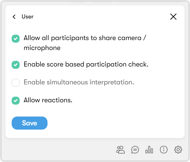 If you open User, you see a list of session participant settings.