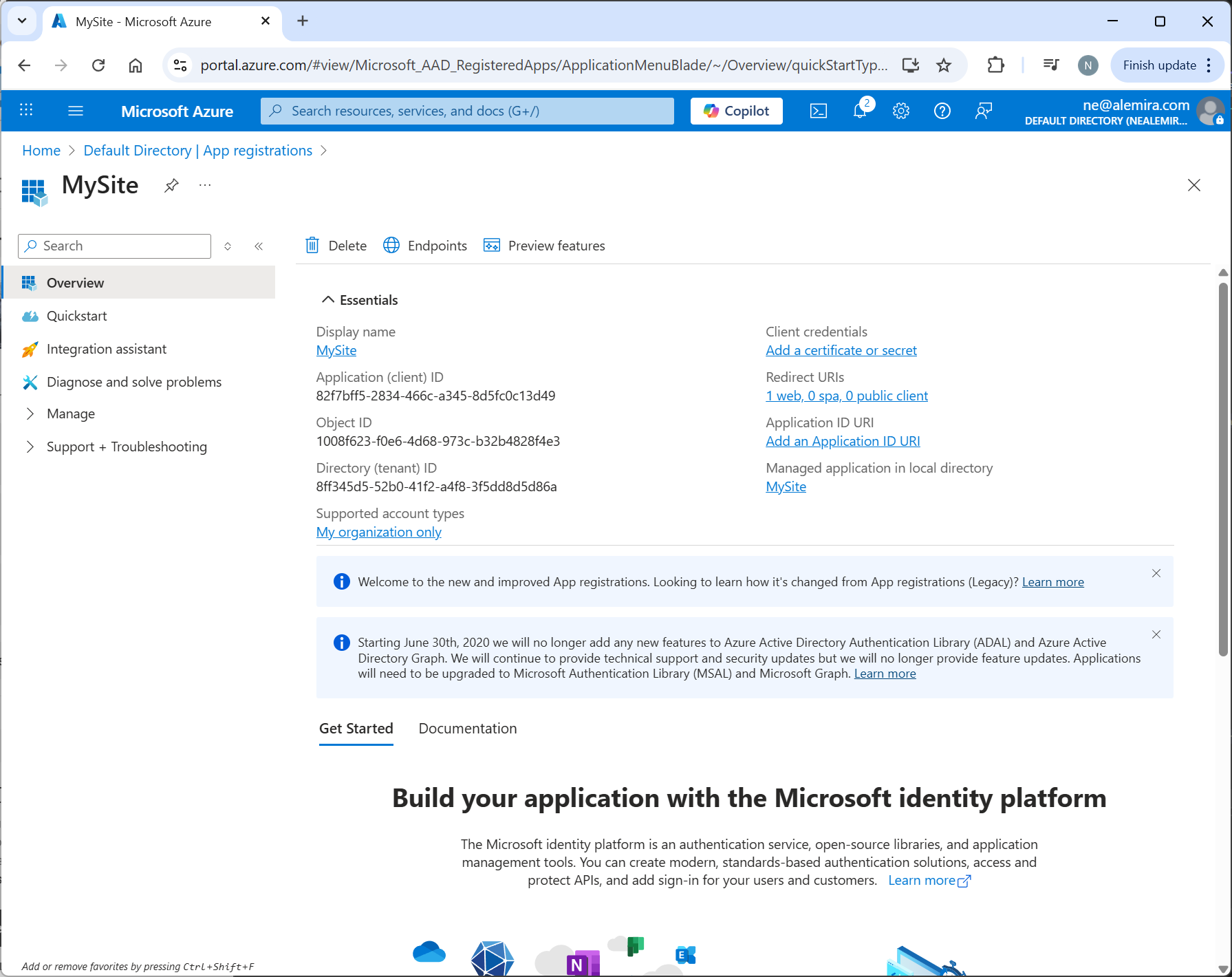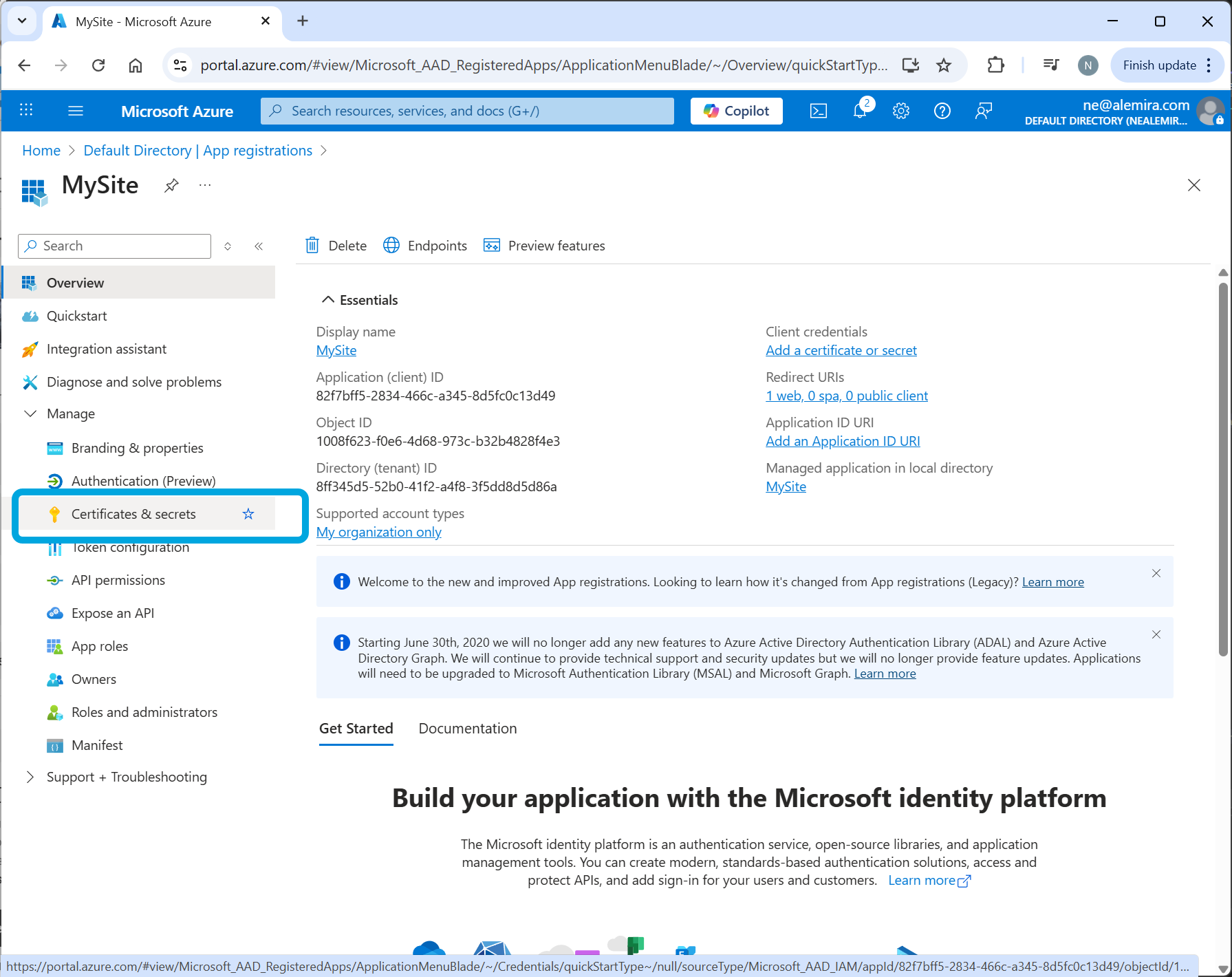 Note: If you lose the value, you must create a new client secret.