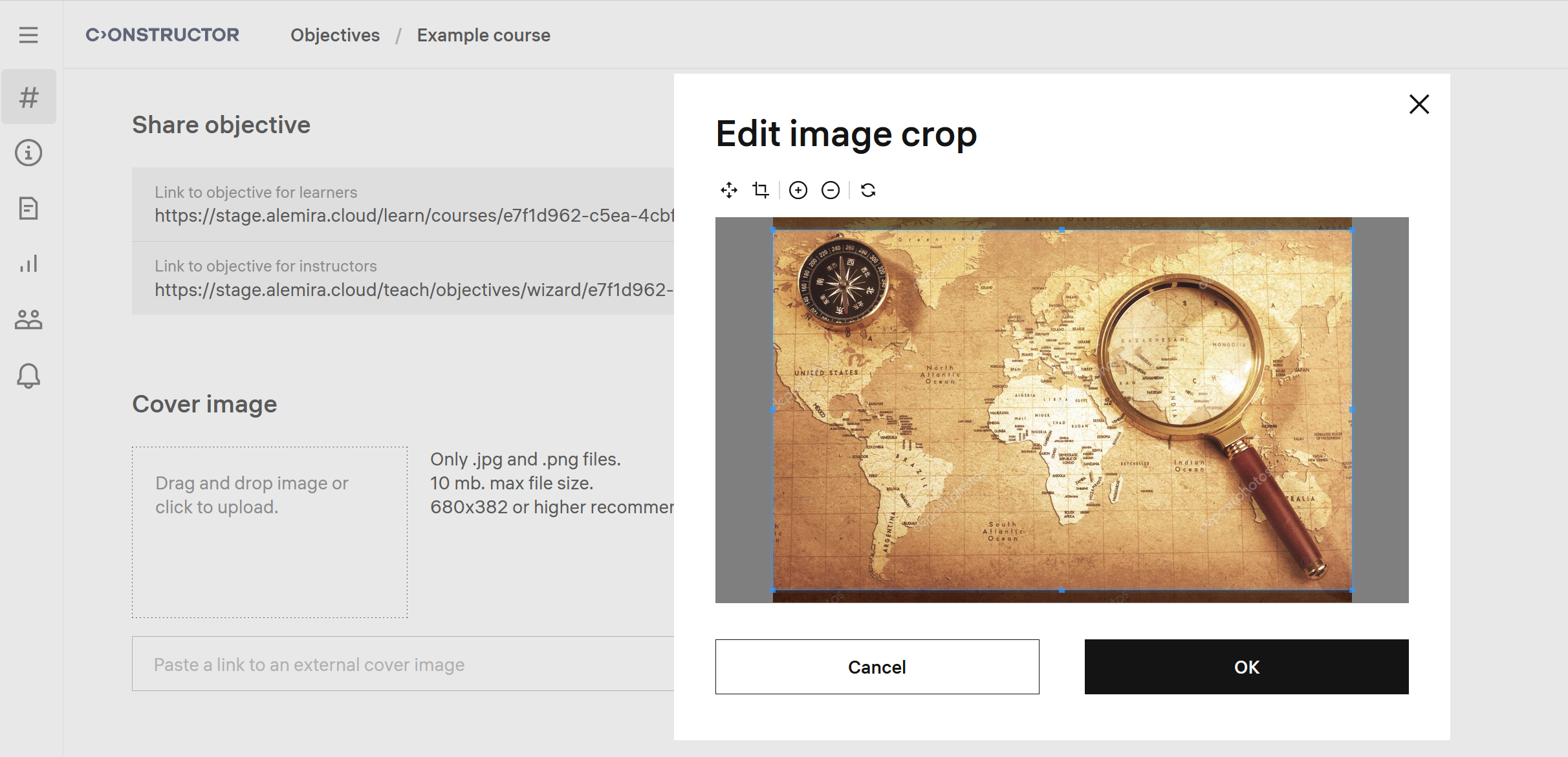 Adding a cover image to a learning activity (a course or program) improves its visual appeal, helps learners to easily identify the course and better navigate between their courses, and provides a visual representation of the course content. It may also enhance learners' engagement and the course branding.