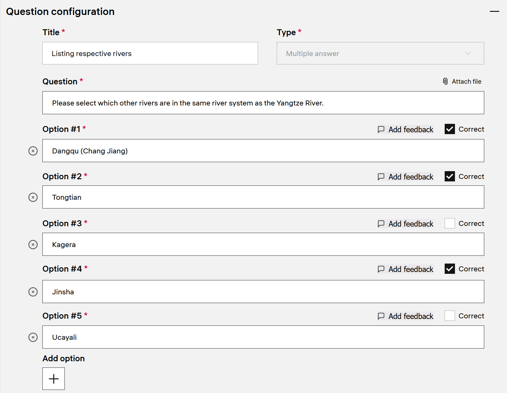 In a Multiple answer question, learners need to select all correct answers (more than one) from a set of provided answer options and distractors.