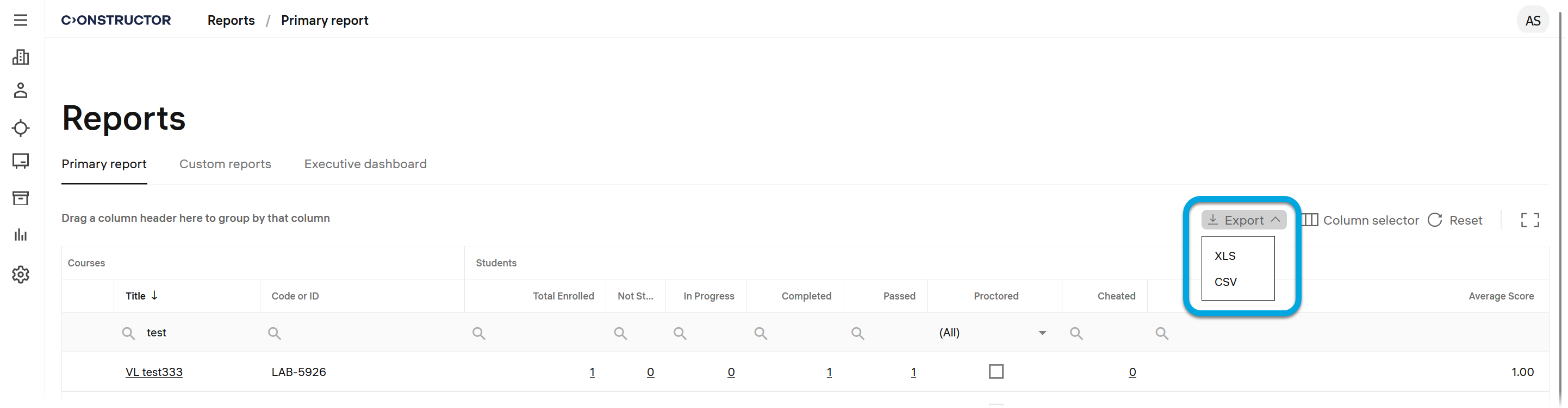 To export the primary report or a custom report you created to an XLSX or CSV file:
