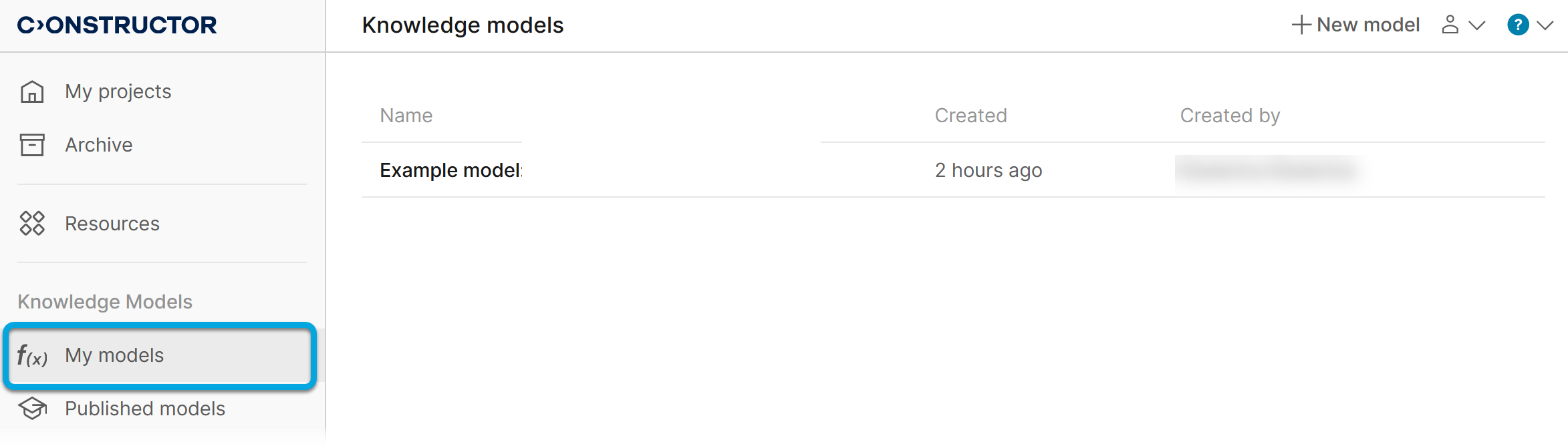 To share the knowledge model with your colleagues, you need to publish it and specify the access level (see Publishing knowledge models).