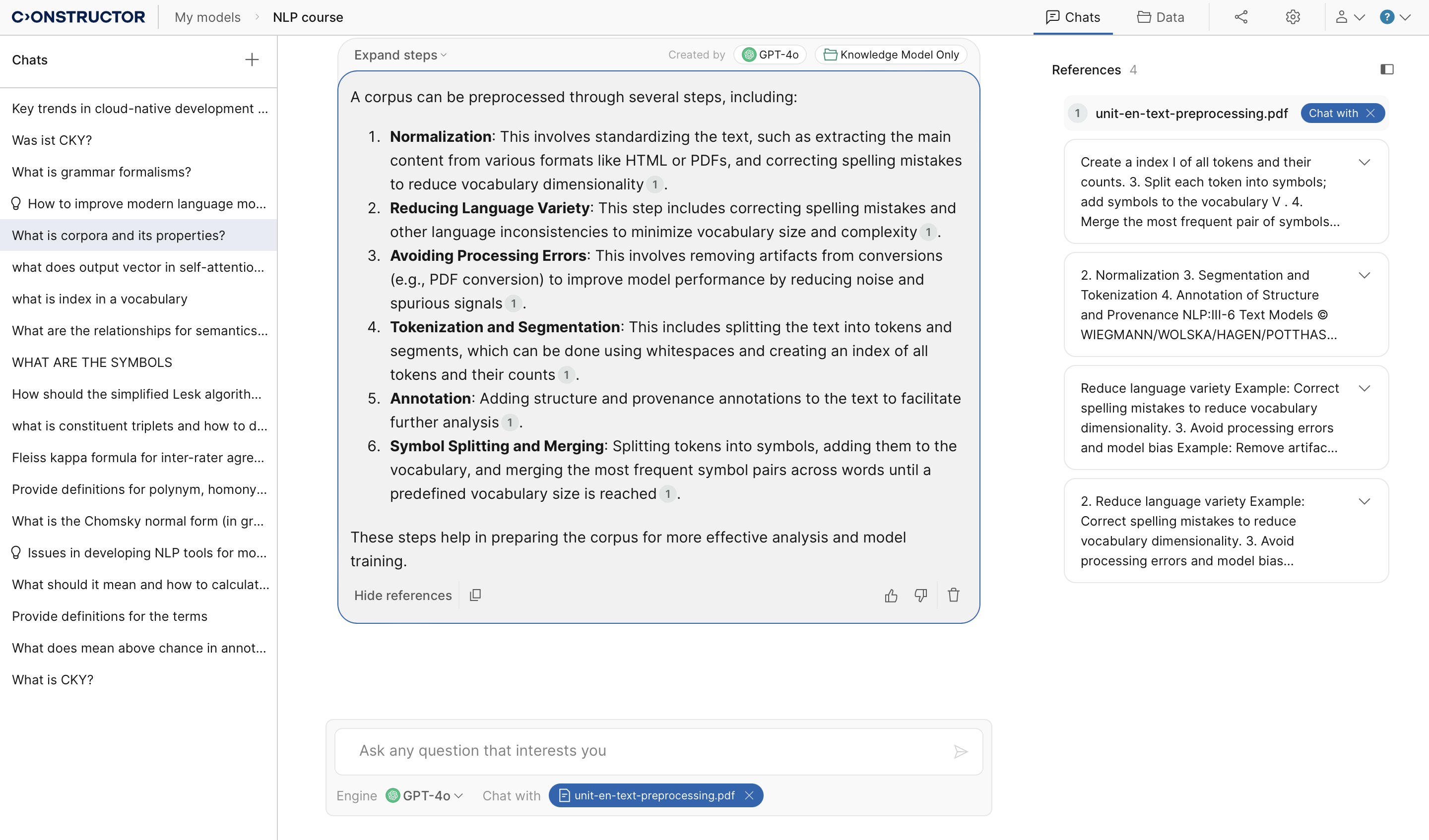 Note: Currently, it is possible to use only one knowledge model per chat. Selecting another model creates a new chat.