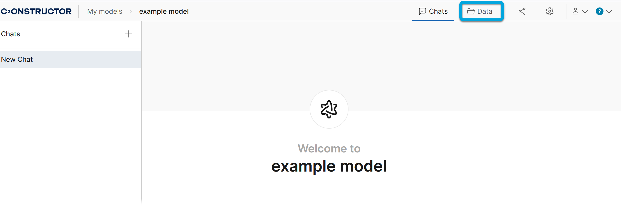 To upload the source data for the Knowledge model only option, go to the Data tab and upload files with the source data for your model. See Creating knowledge models for the details.