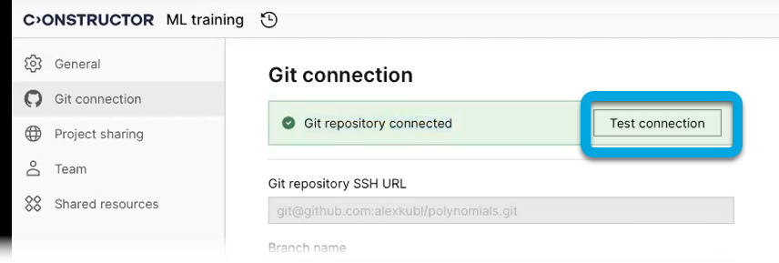In case there are any problems with the connection to your external Git project, you will see a message at the top of the Git connection page of the project settings.