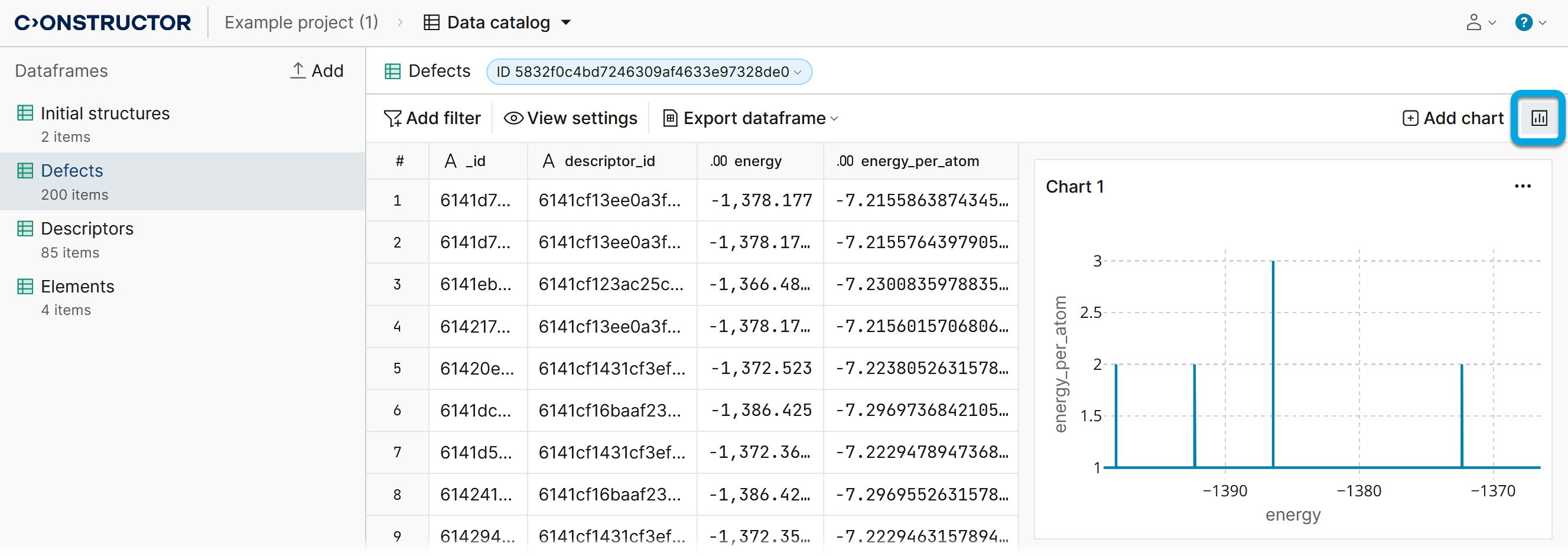 The chart toolbar is located in the upper-right corner. Use it to select a part of the chart, zoom in, zoom out, and so on.