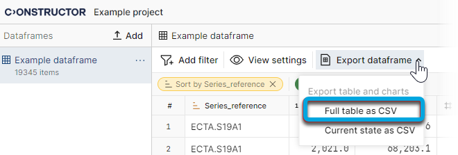 Exporting current dataframe configurations