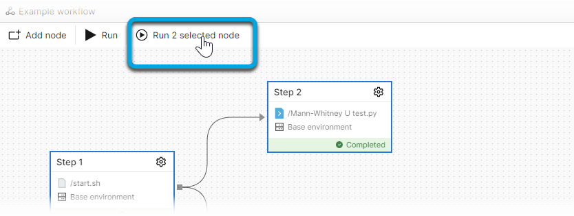 You can run separately one or several nodes that you select. To run particular nodes in a workflow: