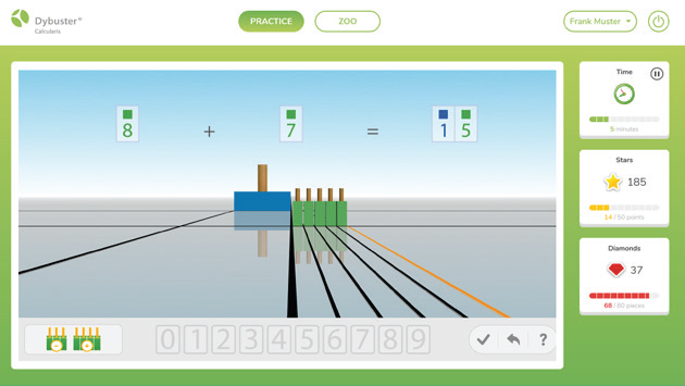 Calcularis guides the user’s learning. Where necessary, it also repeats certain content or exercises to ensure that the learned material is consolidated and retained. Progress is displayed in the form of a friendly animation.