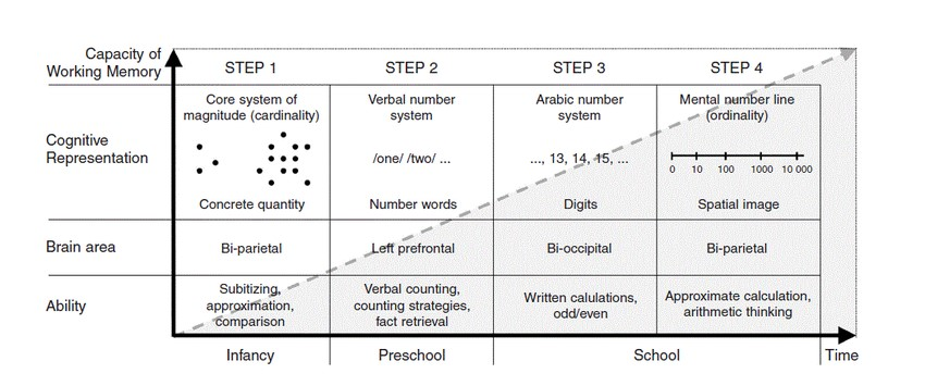 Furthermore, the findings of Brian Butterworth (e.g., Butterworth, B., Varma, S., and Laurillard, D. 2011. "Dyscalculia: From Brain to Education," published in Science 332: 1024) were influential in the development of Calcularis.