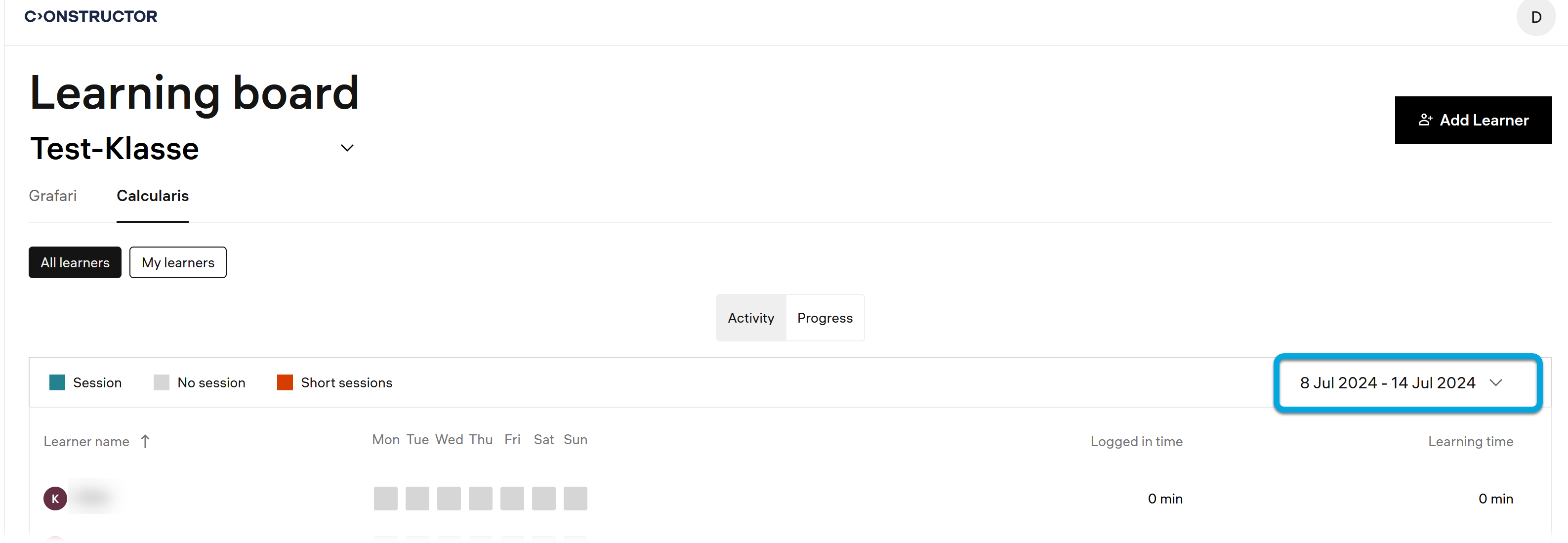 - In the Learning board, select the learner group (class) that you want to monitor.