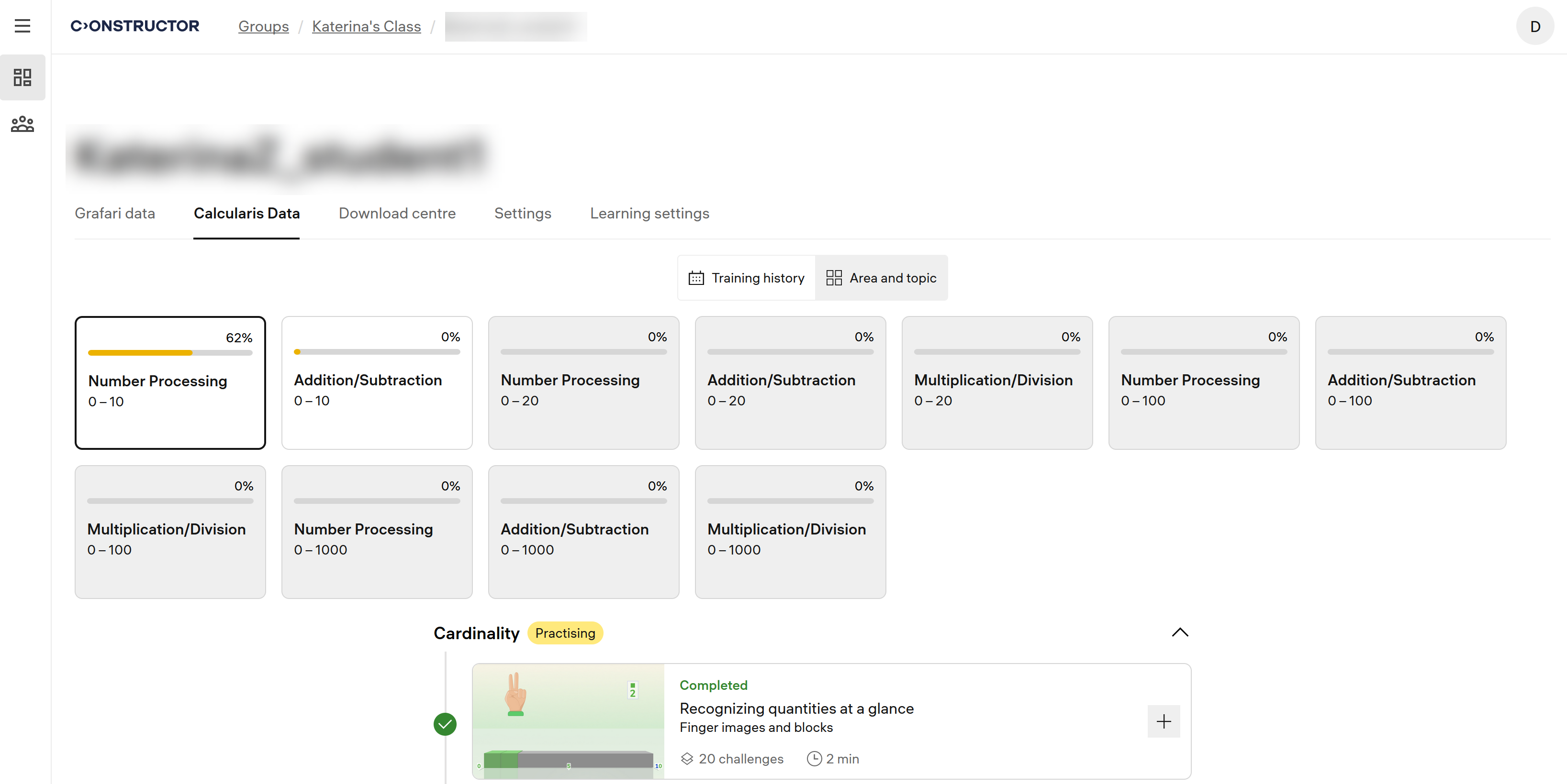 With Constructor Schools, you can track learners' progress in their independent work and quickly identify areas or exercises where support is needed. Depending on your access permissions, you can either see only the groups (classes) assigned to you or view all existing learner groups.