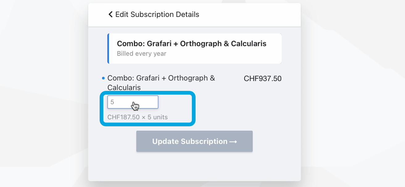 - Click Update subscription. The changes you made will take effect at the next renewal.