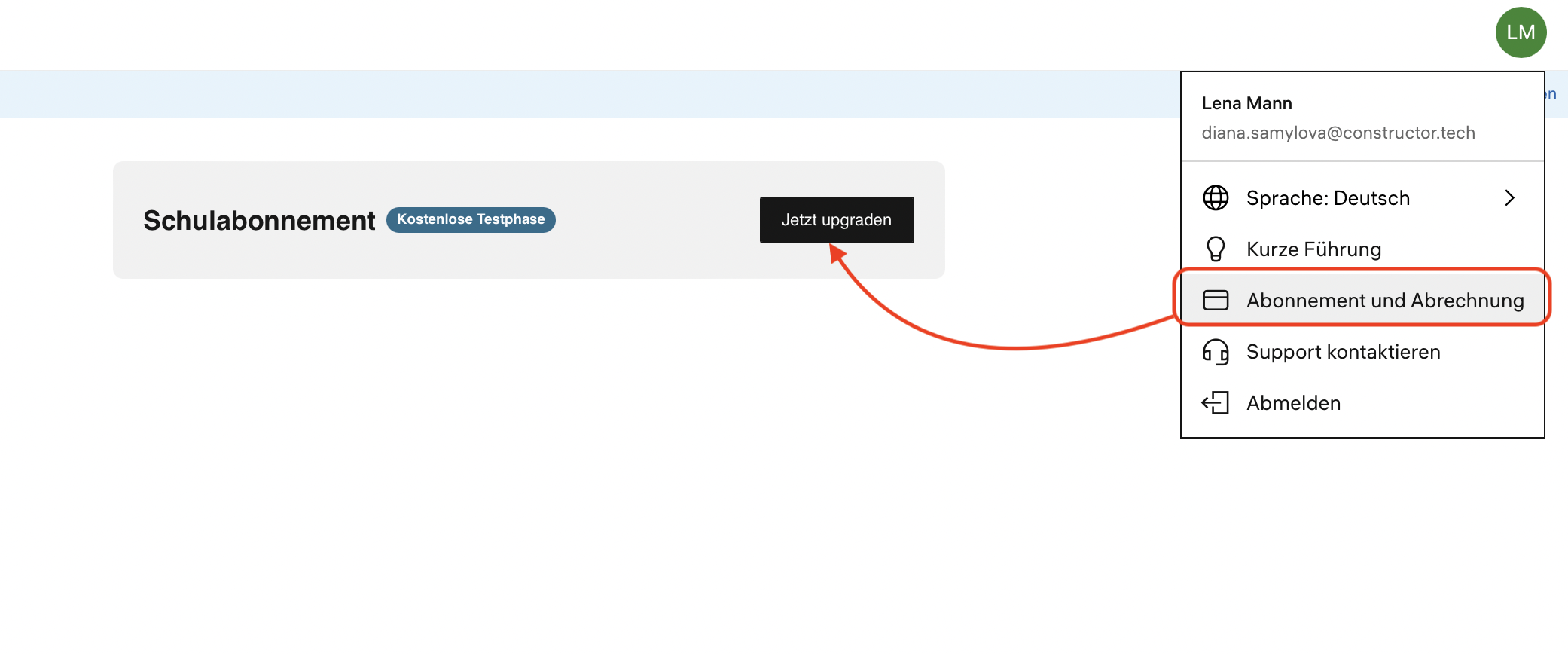 Während und nach der kostenlosen Testphase können Lehrkräfte Lizenzen über die Seite Abonnement und Abrechnung in Coach erwerben.