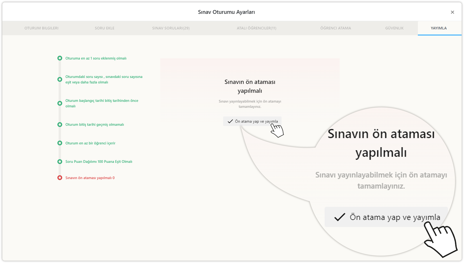 | Öğrenci atama penceresinin sağ altında yer alan kaydet düğmesine tıklayın. | Atalı ve çıkarılmış öğrencilerin sayısını görüntülüyorsunuz. |