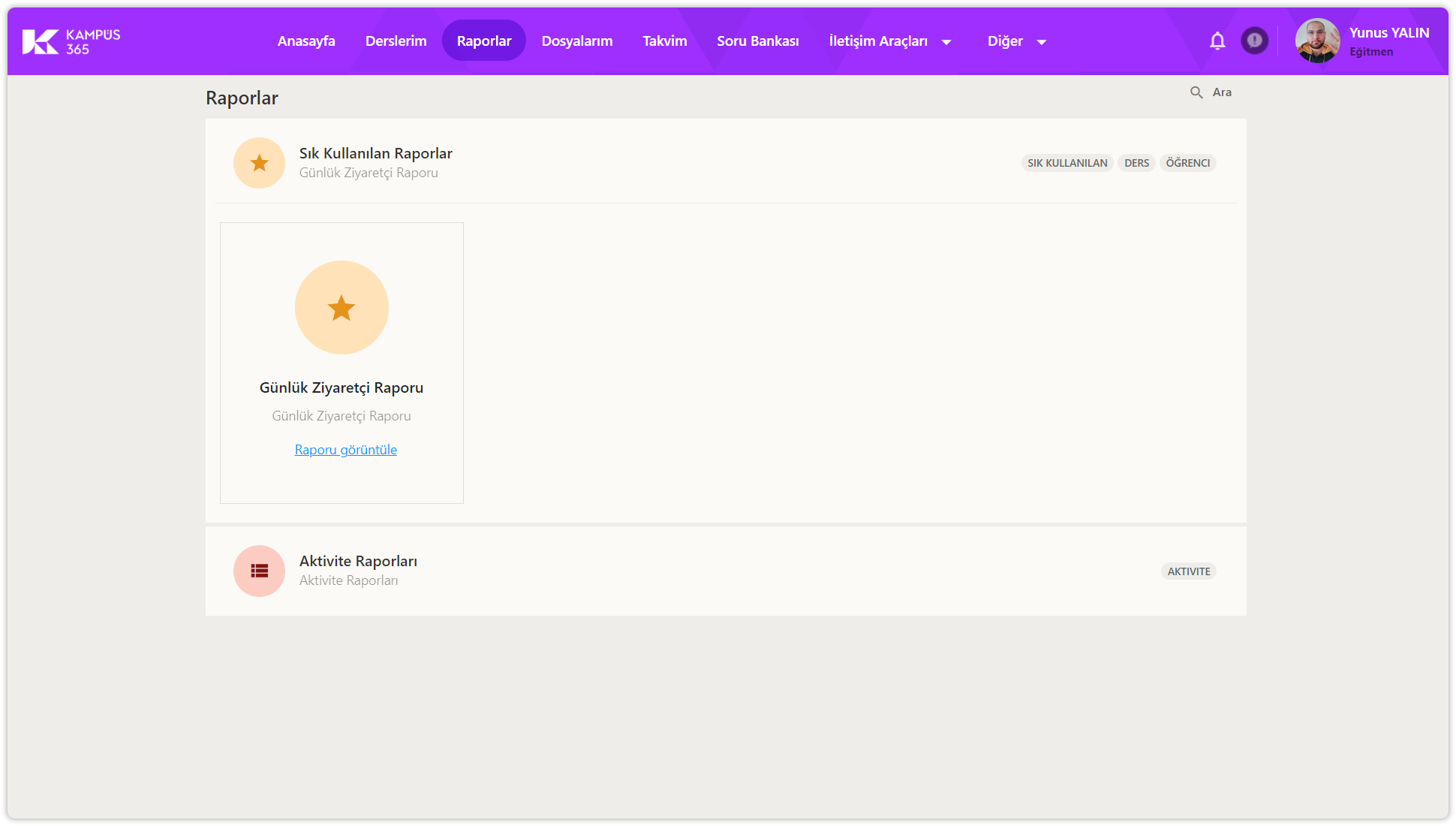Sık kullanılan raporlar bölümünde ziyaretçi raporu alabilirsiniz.