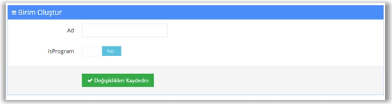Birimin adı oluşturulduktan ve IsProgram seçimi yapıldıktan sonra “Değişiklikleri Kaydedin” butonuna basılır. Gelen sayfada “Program Özelliklerini Düzenleyin” butonuna basılarak programın ayarları yapılır.