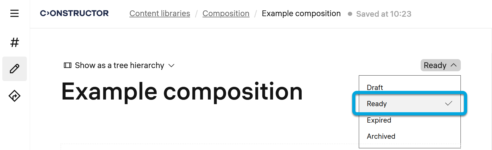 Not: Yayınlamayı planladığınız composition’ın Ready durumunda olduğundan emin olun (bkz. Composition durumlarını yönetme). Draft durumunda yayınlanan composition’lar öğrenenlere “coming soon” olarak gösterilir ancak erişilemez.