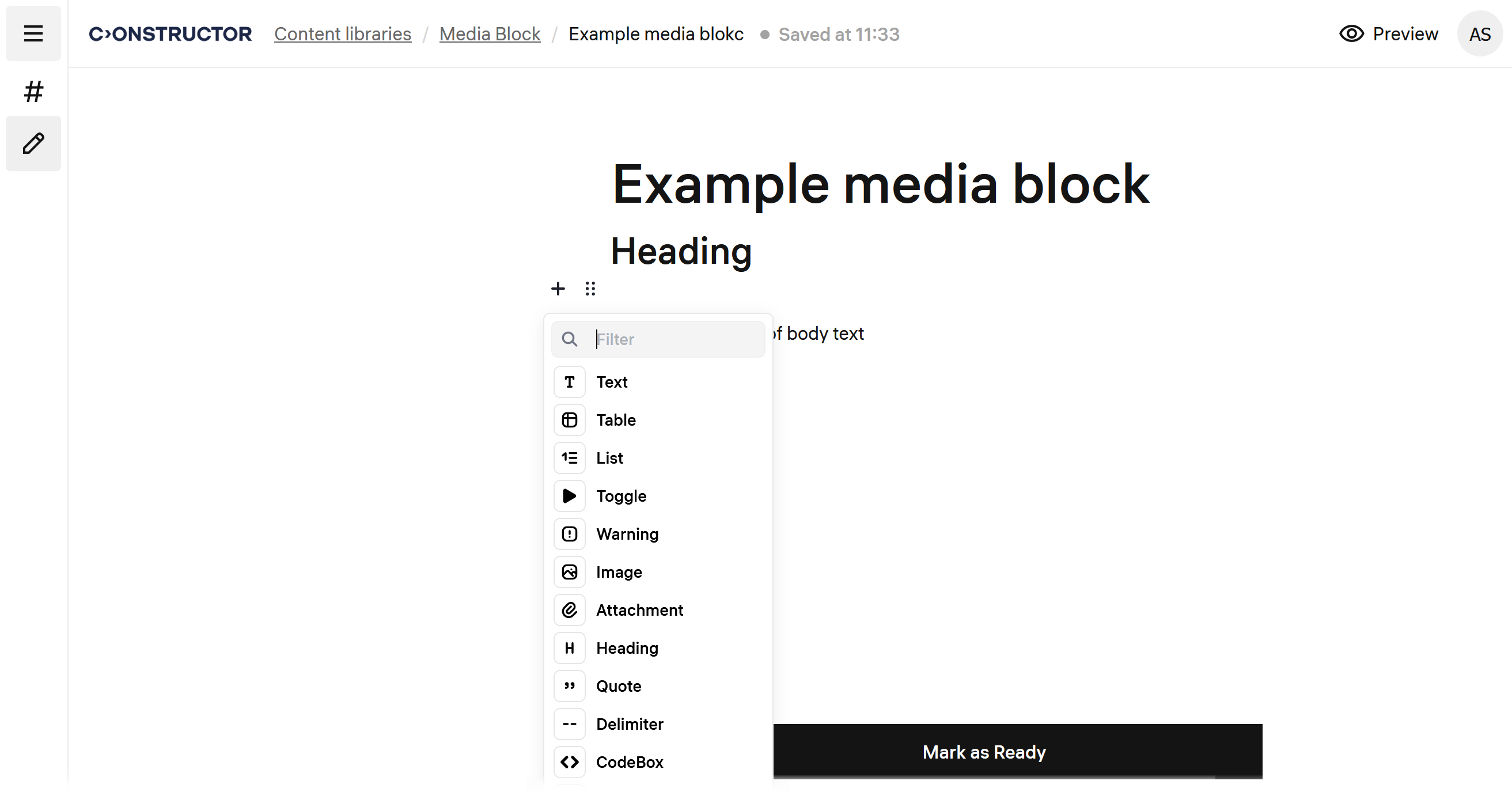 Bir media block bileşeni eklemek için: