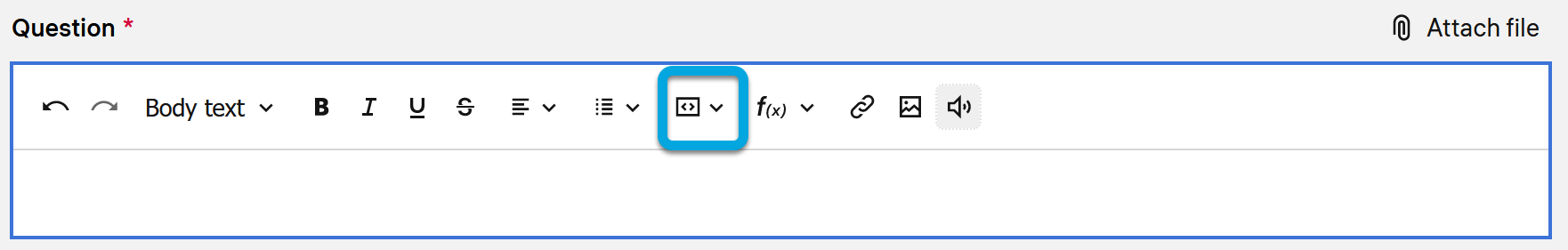 Constructor Learn’deki gelişmiş soru metni düzenleyicisi, satır içi kod veya kod blokları eklemenize olanak tanır. Bunu yapmak için: