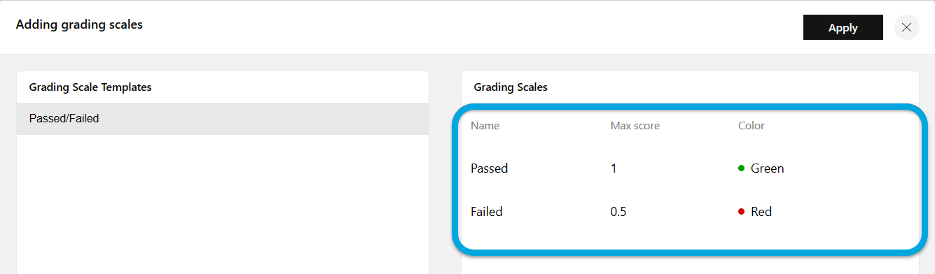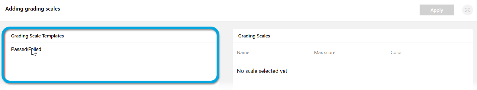 Bir kursa bir notlandırma ölçeği eklemek (veya atanmış olan ölçeği değiştirmek) için: