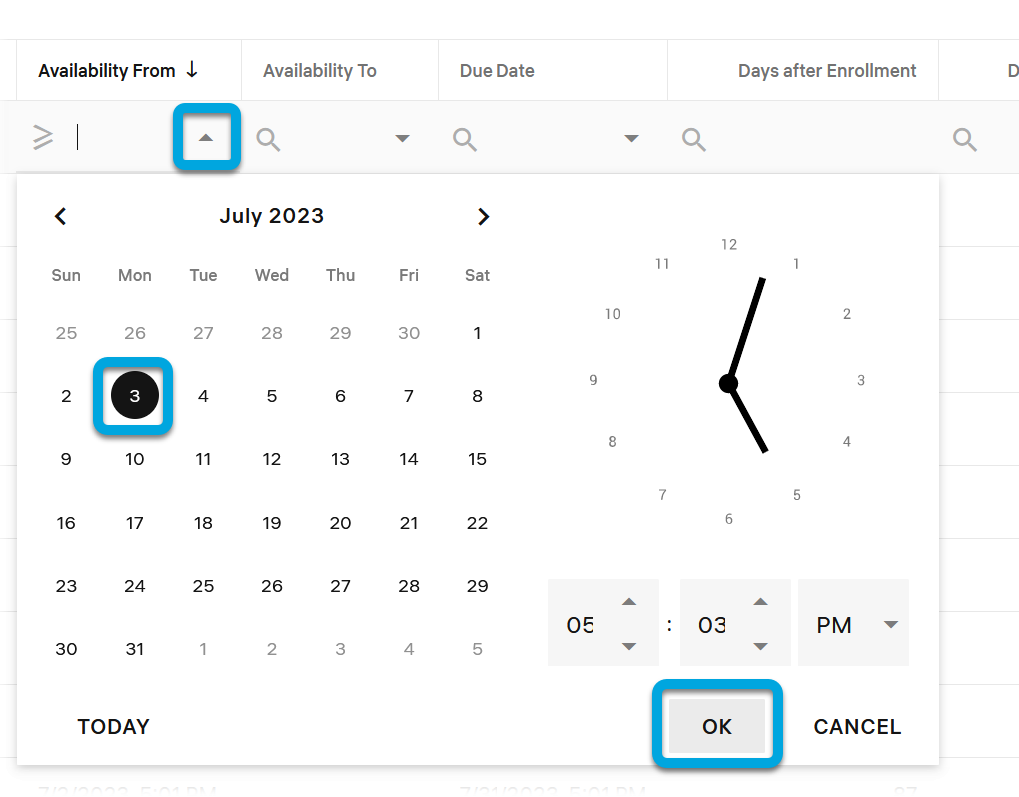 Belirli bir tarih aralığında erişime açık (available) olan kurslara sahip öğrenenleri görüntülemek istiyorsanız, aşağıdaki filtreleme adımlarını uygulayabilirsiniz: