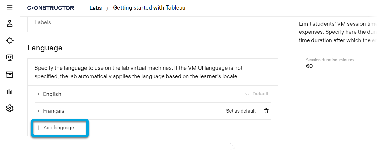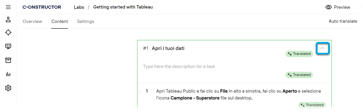 To increase the reach of your audience, you can add translations of your labs content into multiple languages. This feature is available for labs of the Software type. It allows learners who speak those languages to get access to the knowledge you provide.